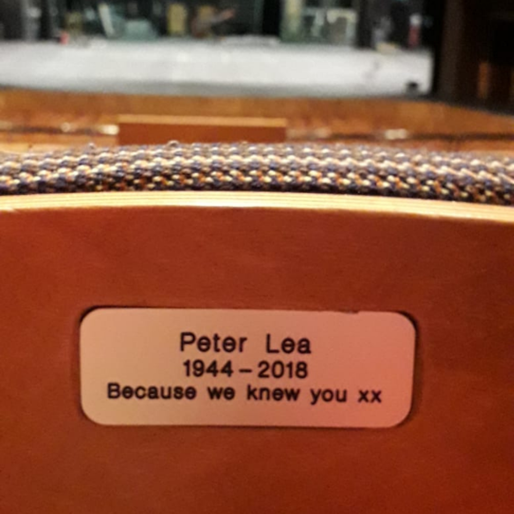 After Peter’s sad passing, his daughters decided to honour his theatre work by having his name placed on a seat at the newly built Wales Millenium Centre – Cardiff. This will be an everlasting legacy and each time his daughters go to see a show here, they always aim to be seated in “Peter’s seat” and a memory of a wonderful man, sadly no longer with us…..